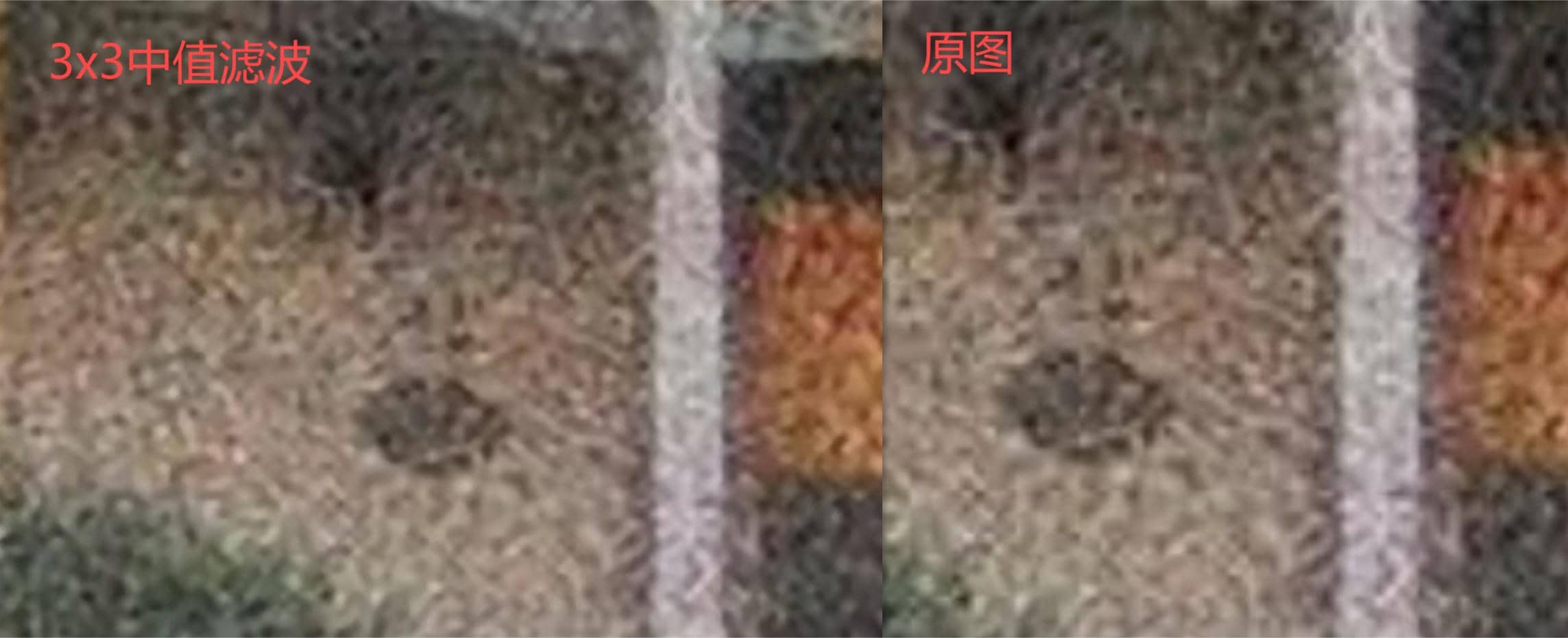 可以发现,3x3的中值滤波和原图几乎没有区别,将其改成9x9的中值滤波效果更加明显: