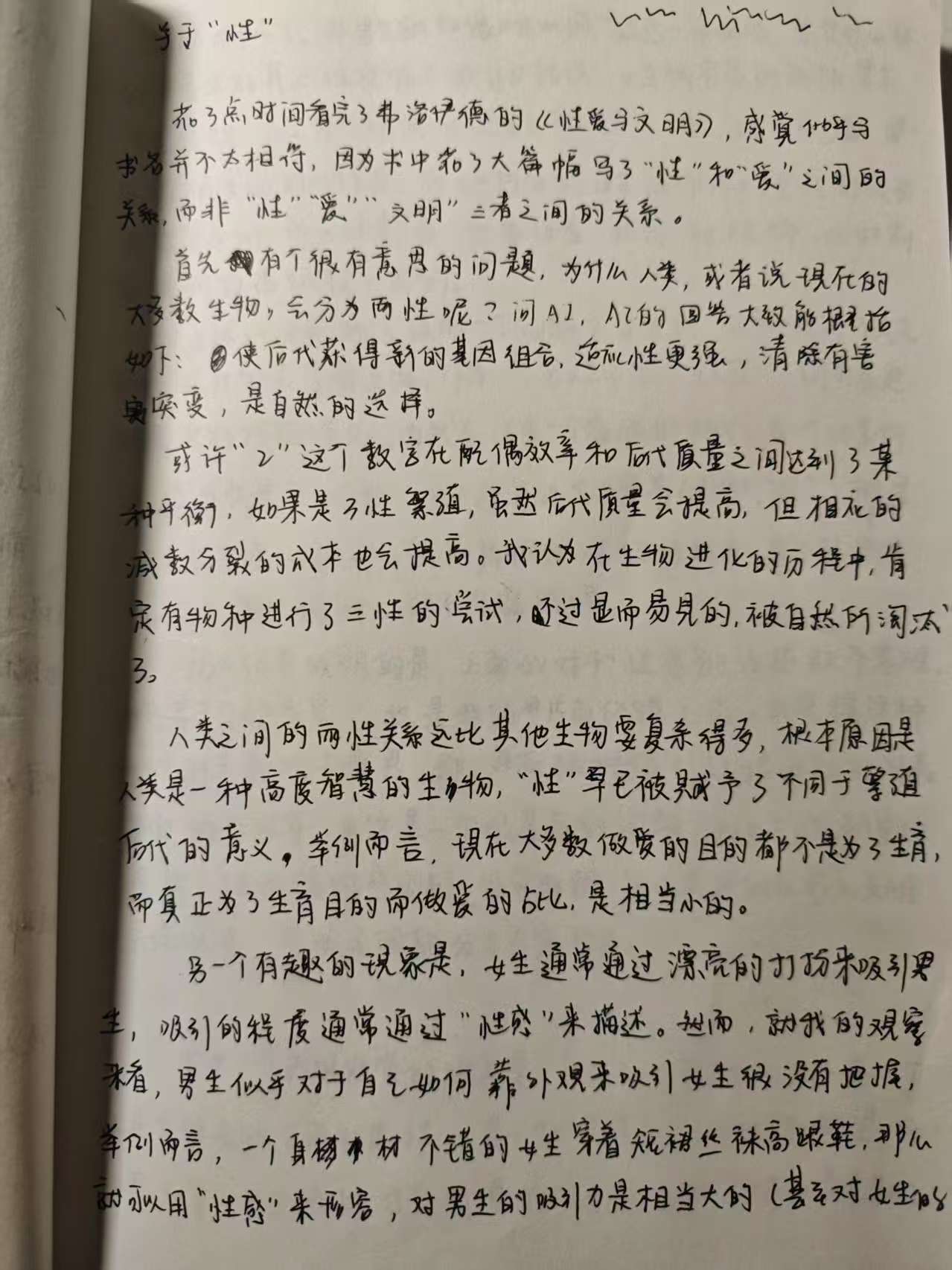首先有个很有意思的问题:为什么人类,或者说现在的大多数生物,会分为两性呢?AI回答大致可以概括如下:能使后代获得新的基因组合,适应环境的能力更强,清除有害突变,是自然的选择。